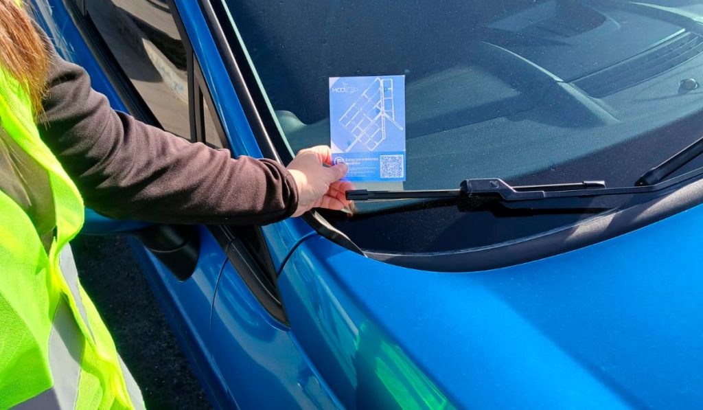 distribución de folletos, mapas y códigos QR para descargar la aplicación móvil.